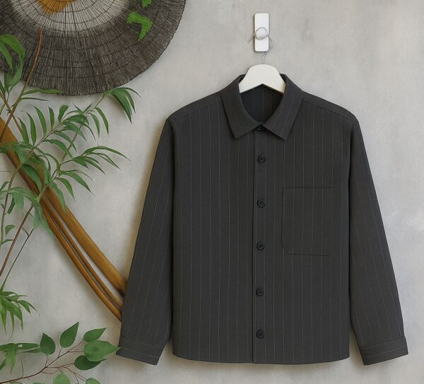 Set ζακέτα πουκαμισο παντελονι γκρι με Ρίγα