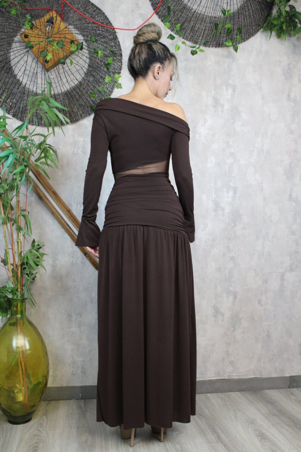 Maxi φόρεμα σε καφέ χρώμα, one size.