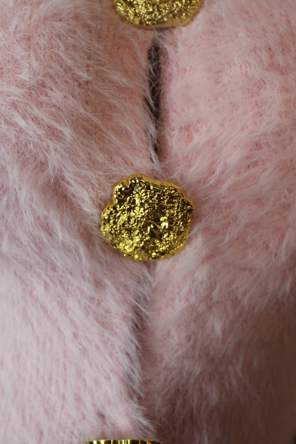 Ζακέτα μοχέρ με μεγάλα χρυσά κουμπιά, ιδιαίτερα ζεστή και στιλάτη,