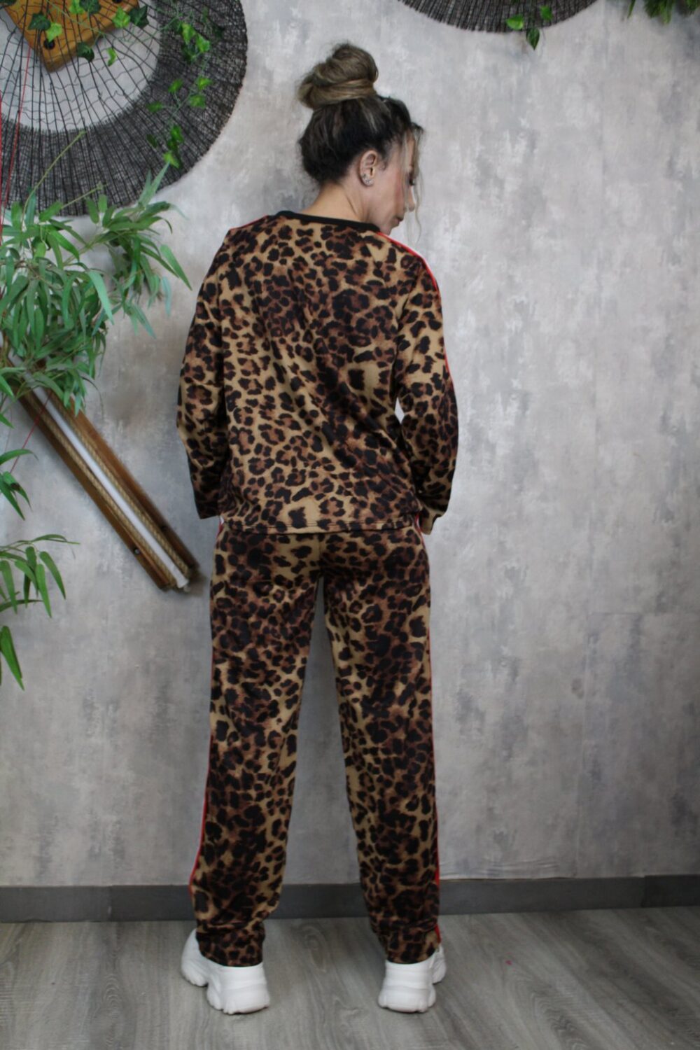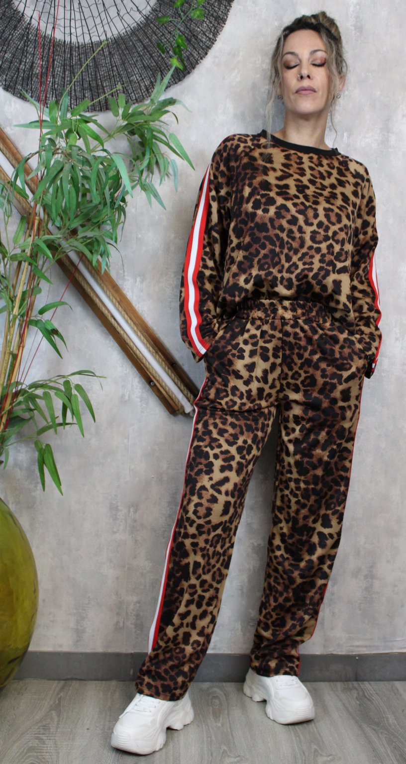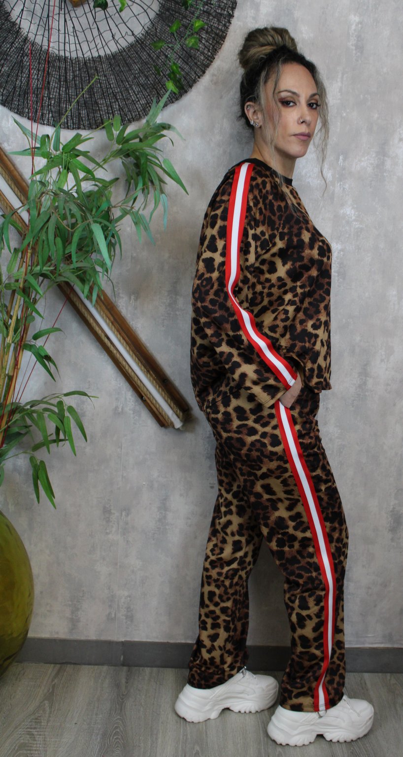 Σετ animal print με κόκκινη ρίγα στο πλάι για δυναμικές εμφανίσεις.