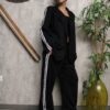Το παντελόνι έχει επίσης λευκές πλαϊνές ρίγες, λάστιχο στη μέση με κορδόνι και πρακτικές τσέπες για στυλ χωρίς προσπάθεια.