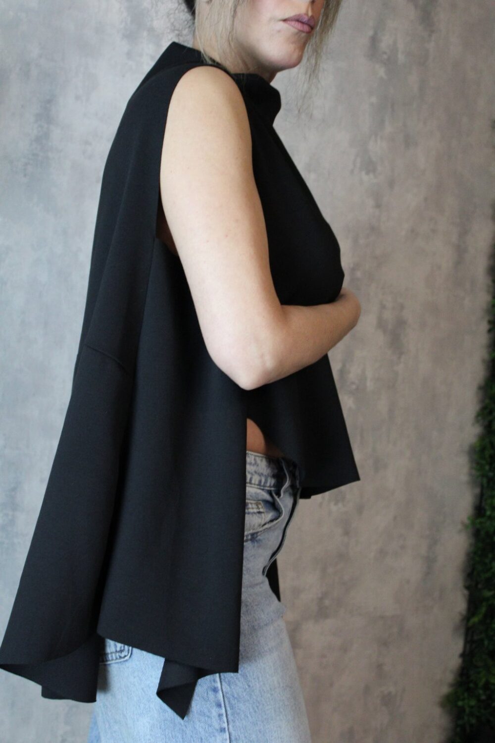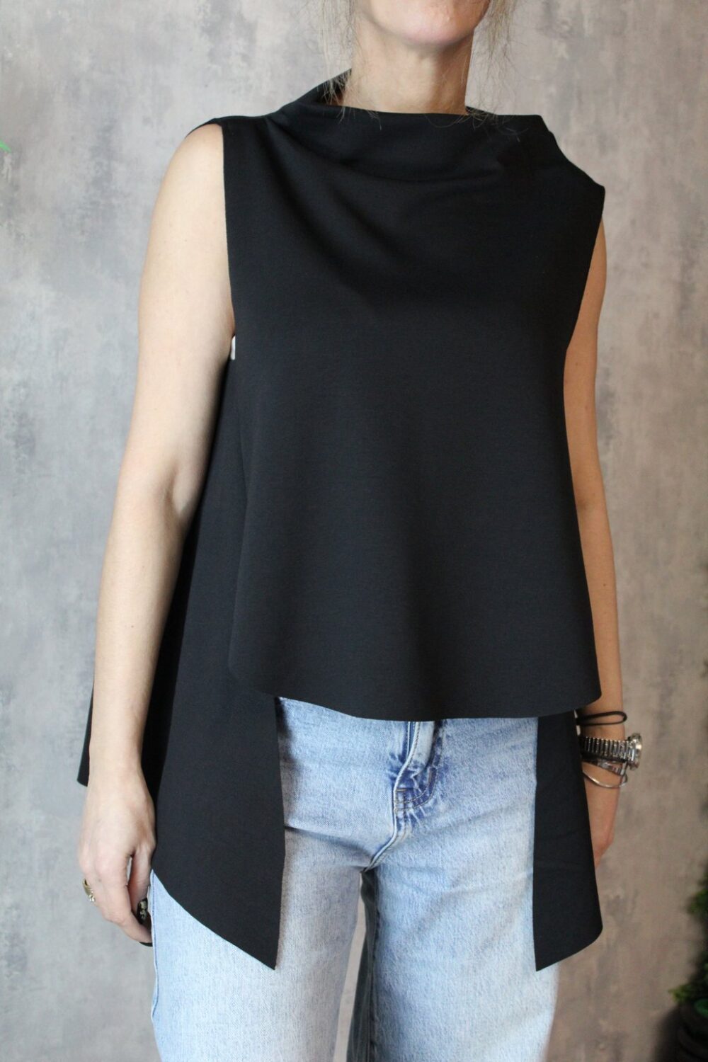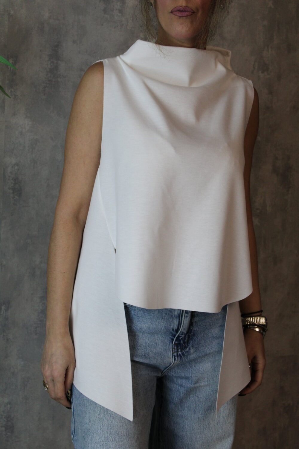 Ιδιαίτερη μπλούζα με ξεχειλωτό ζιβάγκο, σε ασύμμετρη γραμμή