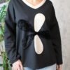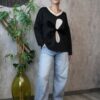 Μπλούζα σε μαύρο χρώμα με v λαιμόκοψη και διακριτικό μπεζ τελείωμα διαθέτει εντυπωσιακή διακοσμητική λεπτομέρεια στο μπροστινό μέρος με μαύρη γουνα και χρυσό χρώμα που προσδίδει κομψότητα και χαρακτήρα έχει μακριά μανίκια και εφαρμογή ιδανική για καθημερινές αλλά και προσεγμένες εμφανίσεις συνδυάζεται εύκολα με παντελόνι η τζιν