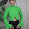Πλεκτή μπλούζα, one size, με μικρό ζιβάγκο και μανίκι καμπάνα για ιδιαίτερο στυλ.