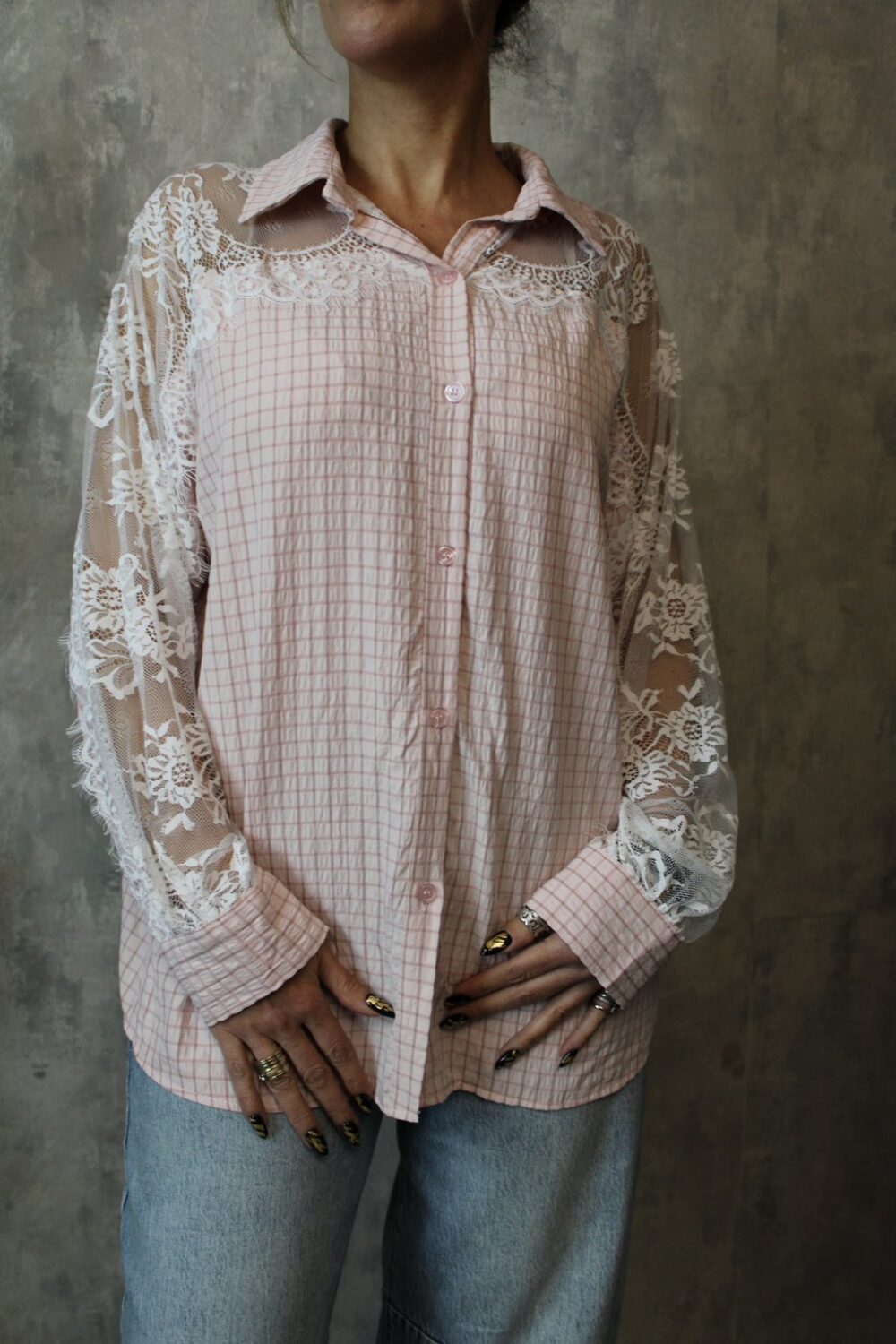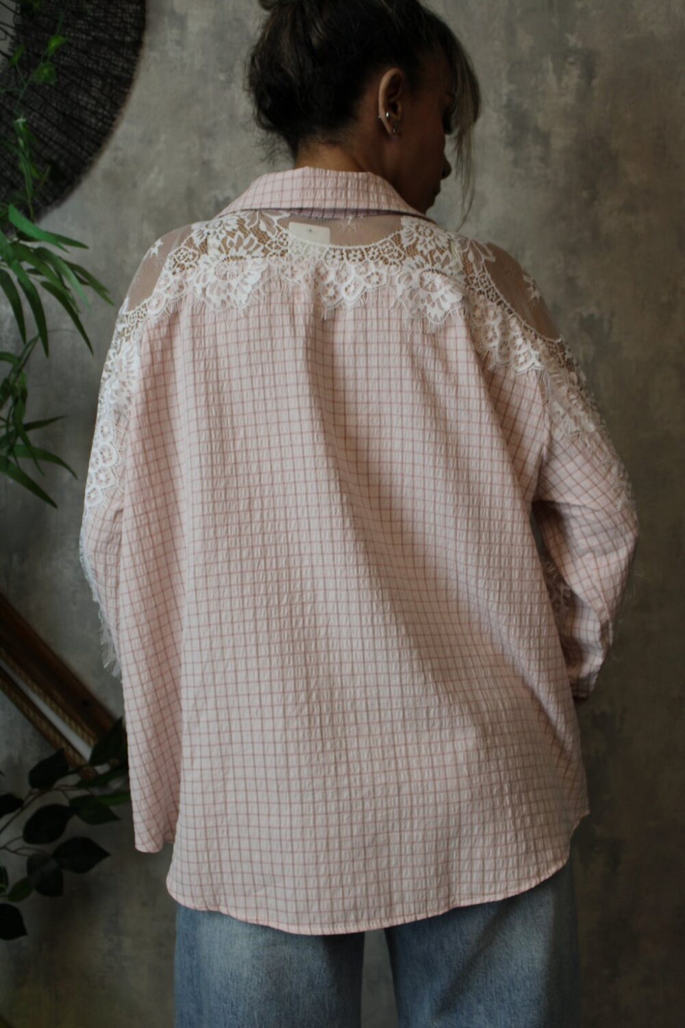 με αυτό το ιδιαίτερο καρό πουκάμισο σε απαλή ροζ απόχρωση.