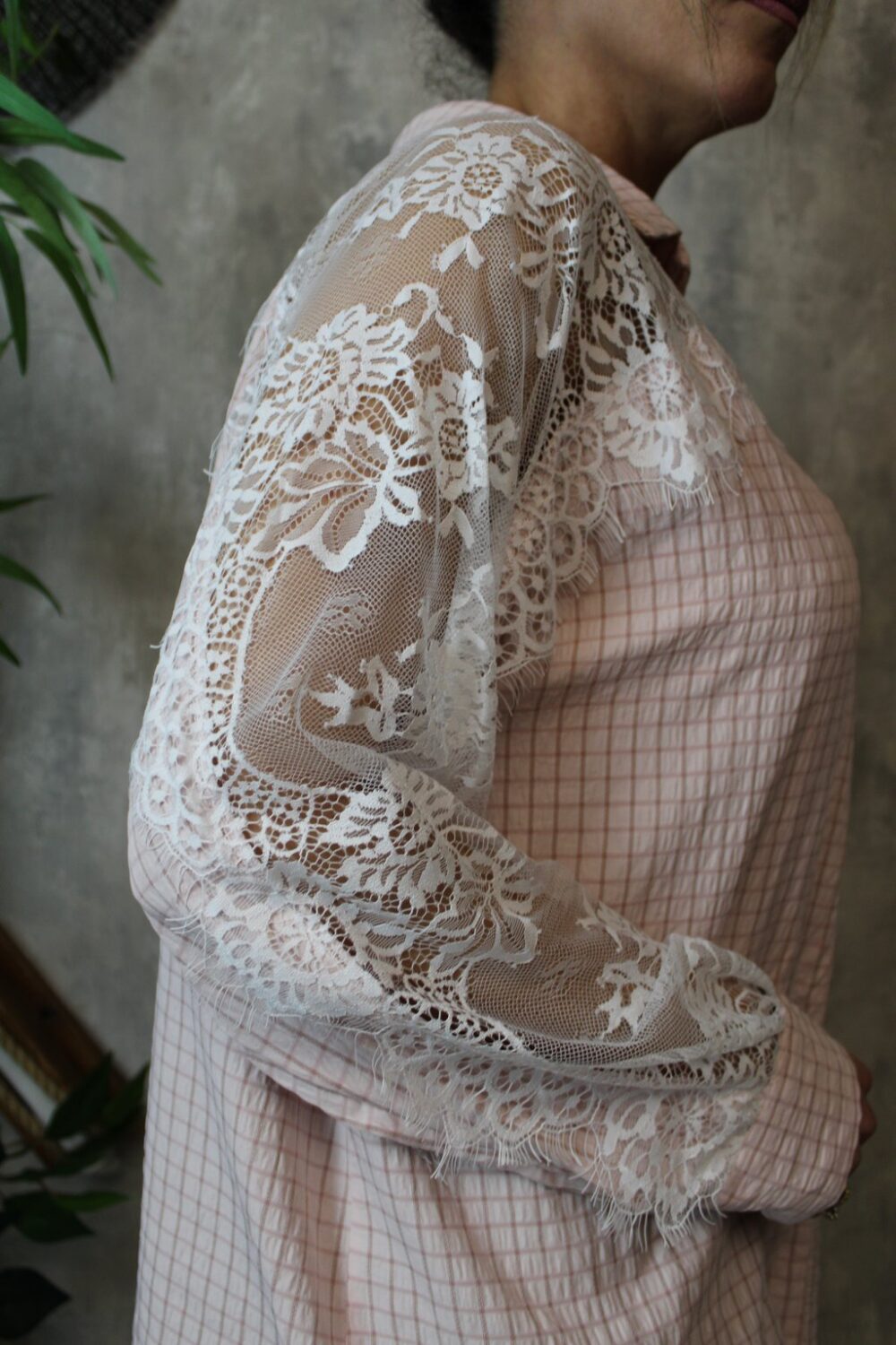 Ο κλασικός καρό σχεδιασμός αναβαθμίζεται μοναδικά με την προσθήκη διάφανης δαντέλας,