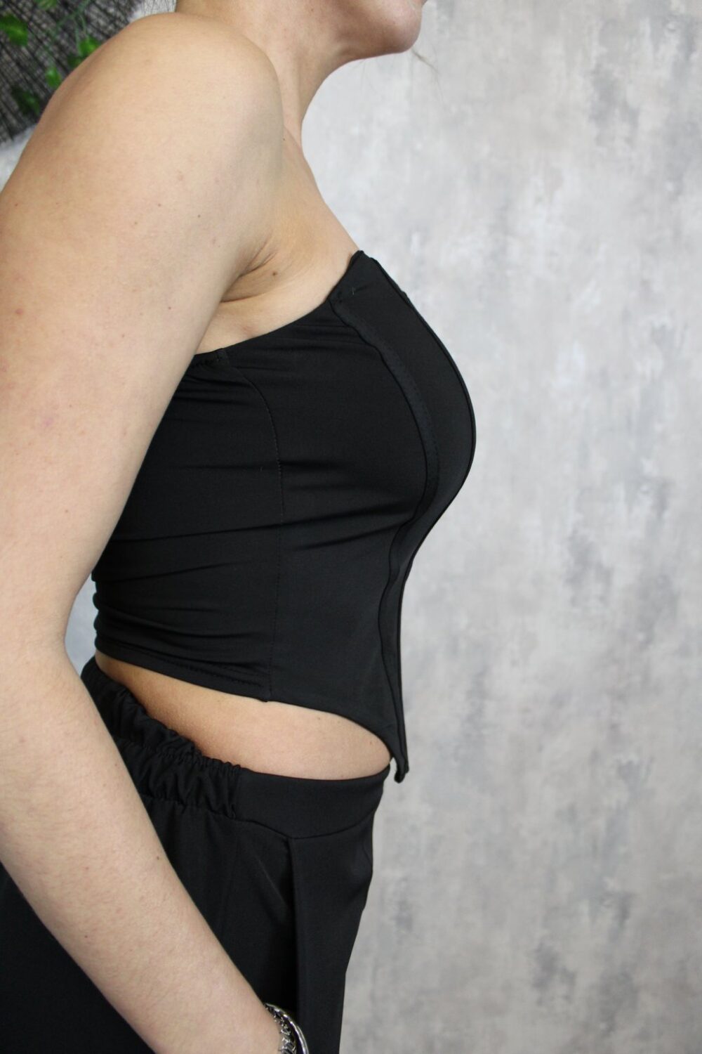 Στράπλες top σε μαύρο χρώμα, με μπανέλες