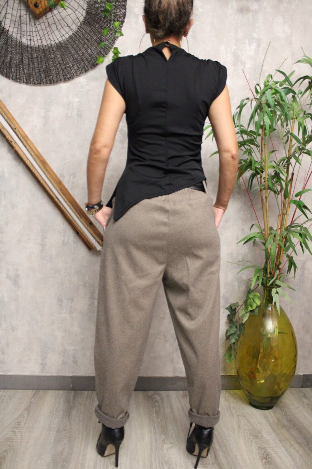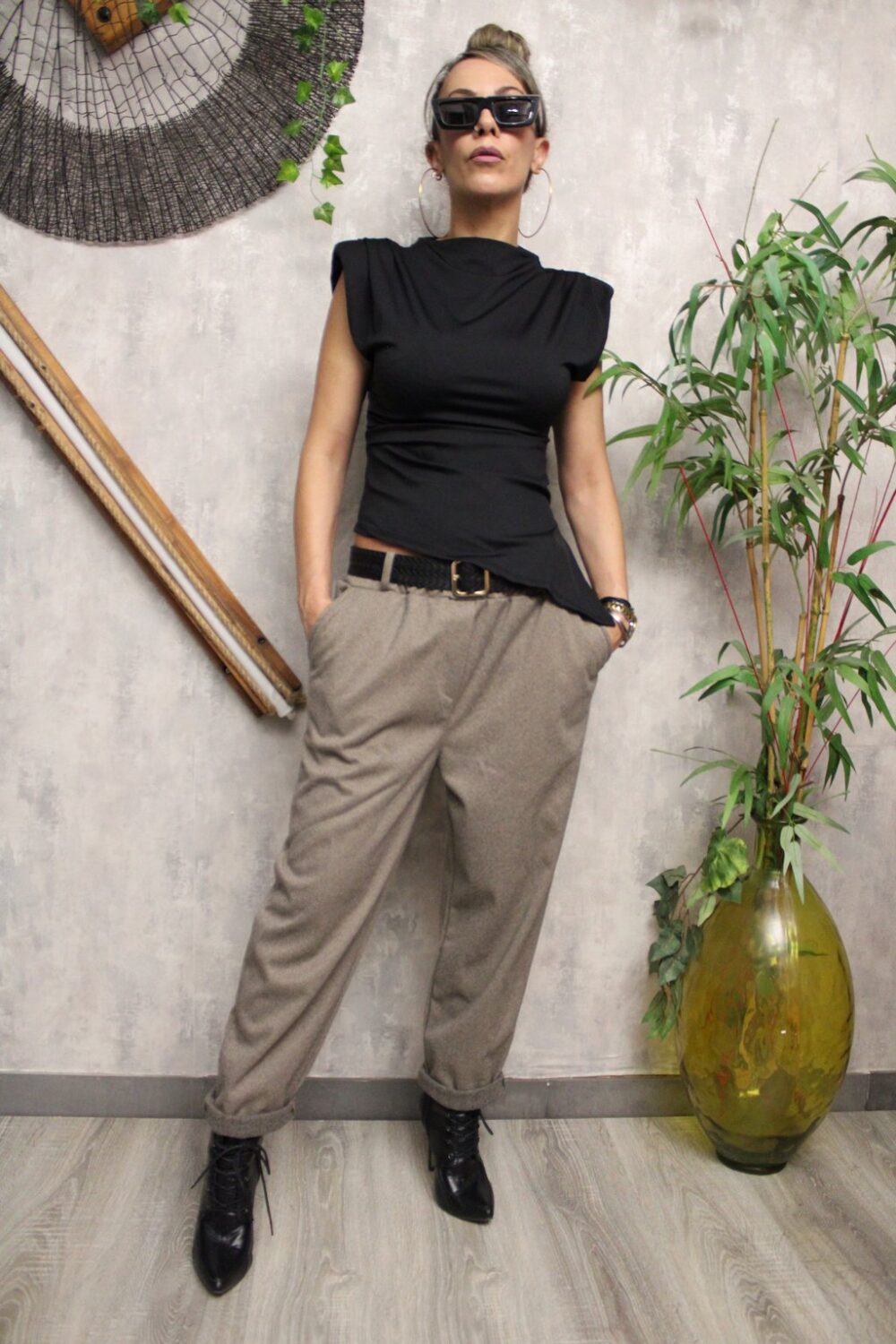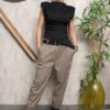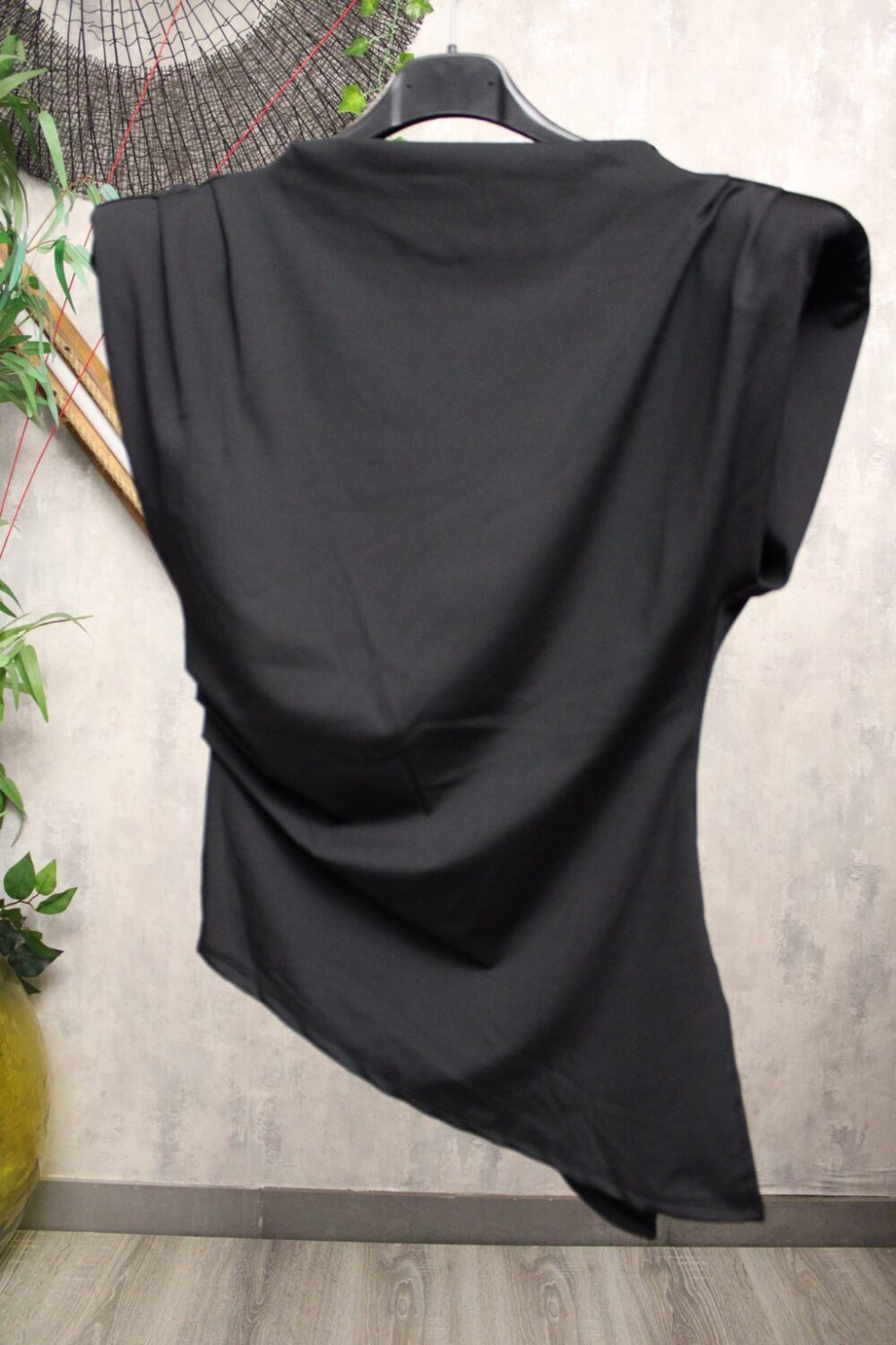 Αμάνικη μπλούζα με βάτες στους ώμους και διακριτικές πιέτες που αναδεικνύουν τη σιλουέτα.