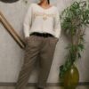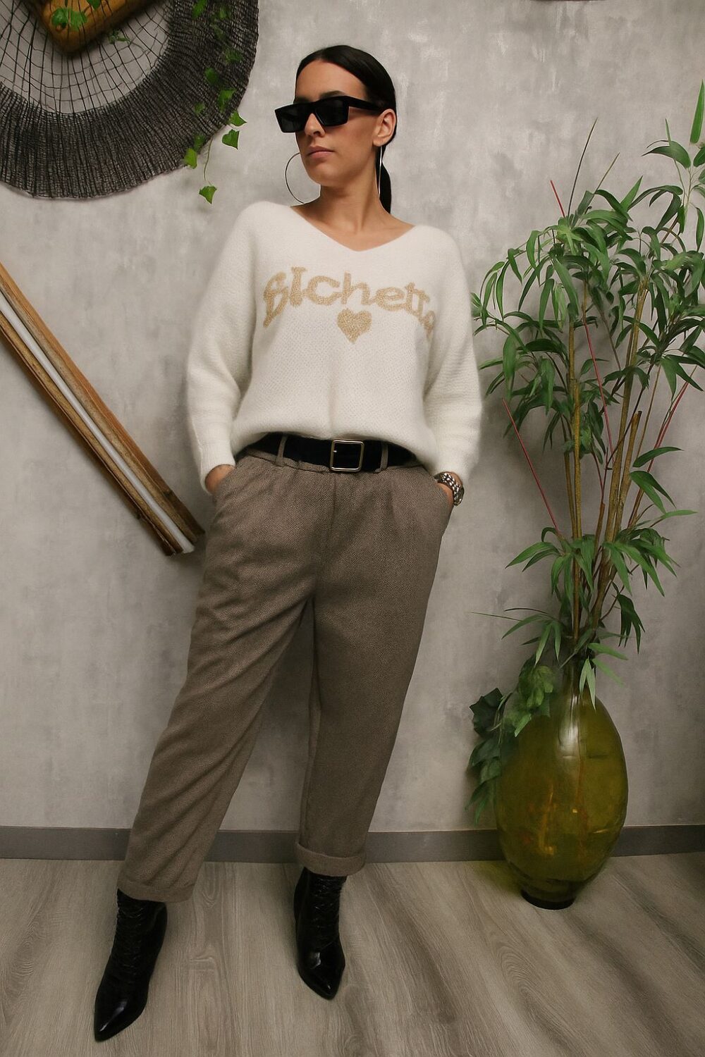 Χνουδωτή και άνετη μπλούζα με διακριτικό προσχέδιο από χρυσόκλωστη, ιδανική για όλες τις ώρες της ημέρας.